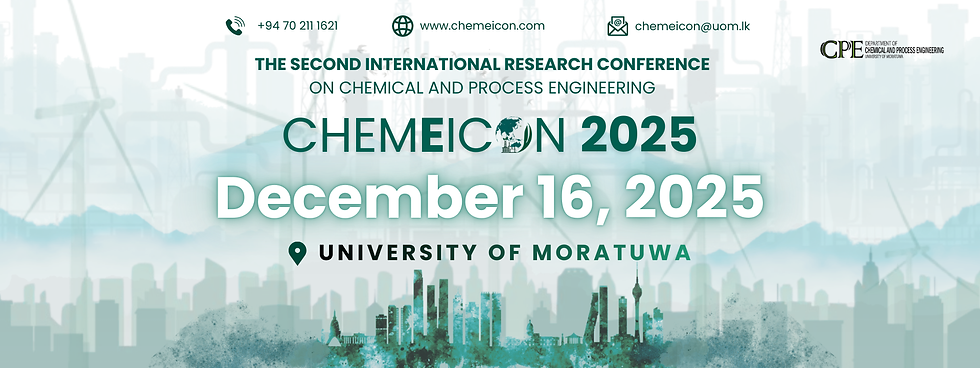 ChemEICon is an International Research Conference on Chemical and Process Engineering, organized by the Department of Chemical and Process Engineering, Faculty of Engineering, University of Moratuwa, Sri Lanka. This conference serves as a premier platform for interdisciplinary dialogue and collaboration, bringing together researchers, academics, industry experts, and professionals from around the globe.